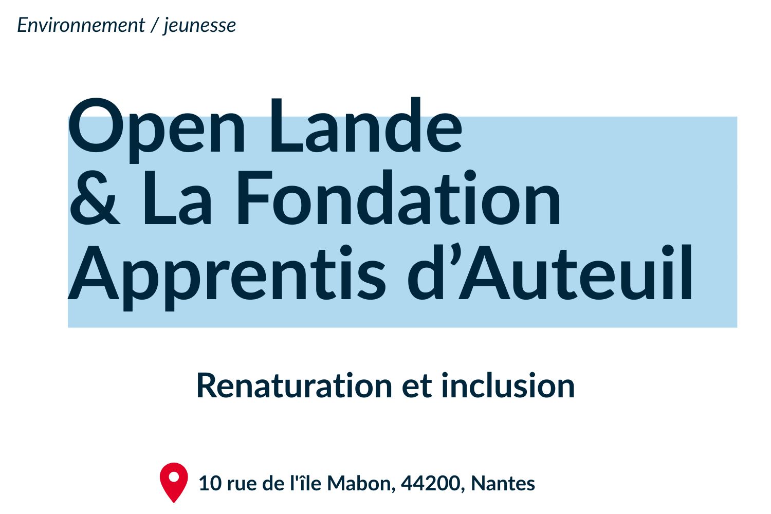 Lors de cette journée solidaire, vous découvrirez le tiers-lieu d’Open Lande et rencontrerez des jeunes de la Fondation Apprentis d'Auteuil en formation pour être paysagistes qui participeront à cette journée à vos côtés. Après avoir fait connaissance à travers des jeux brise-glace, vous serez répartis en groupes et participerez à des missions d’aménagement du tiers-lieu tout en découvrant des alternatives pour protéger notre environnement.*